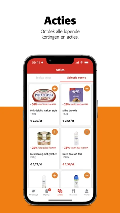 • Ook van uit de Rode Prijzen en aanbiedingen op maat uit de folder ‘Selectie voor U’ voeg je vlot producten toe aan je lijstje.