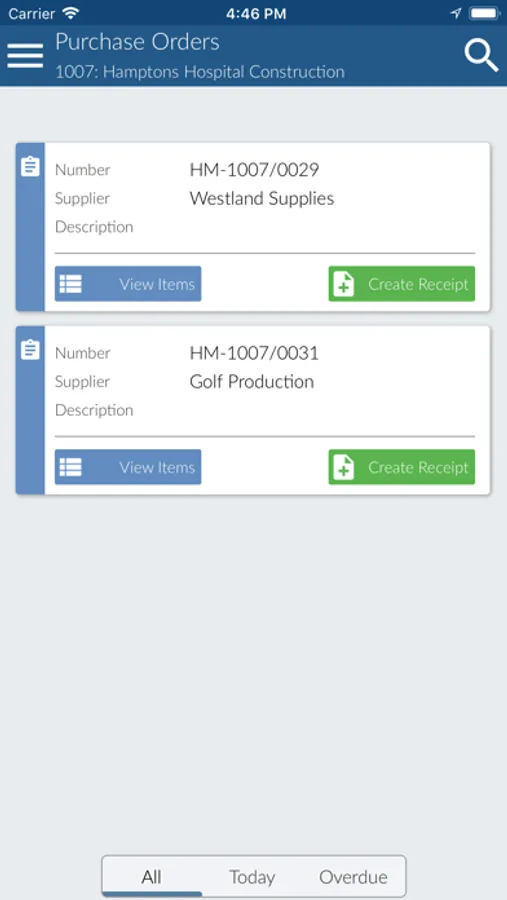 * View POs for specific contracts or by expected delivery date: today, overdue or all orders.