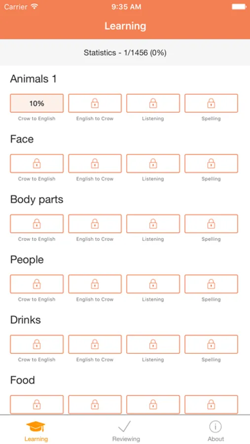 > Track your progress and review words you’ve learned by category or activity