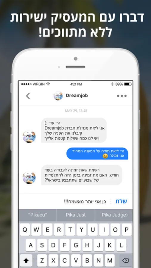 - גישה ישירה למועמד בצ'אט ישיר לייב , אין צורך בהתכתבויות ארוכות באימייל הכול כאן ועכשיו