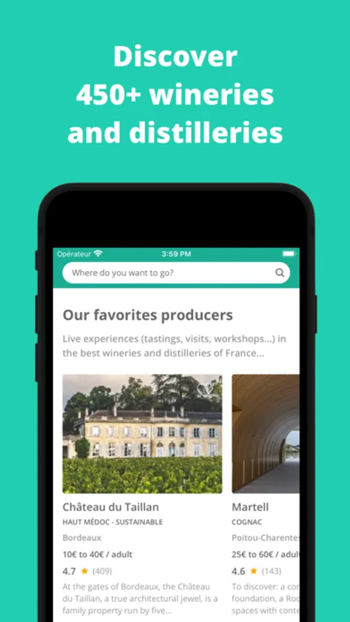 - More than 450 selected wineries and distilleries and 1500 experiences to enjoy