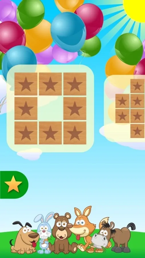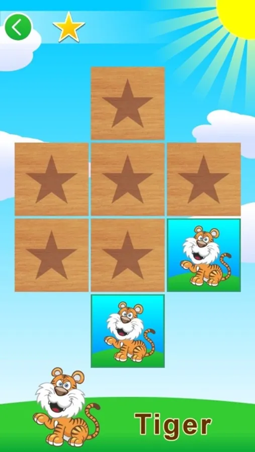 After all the squares turn over, child presses any of these, and see the picture of any animal, such as a lion.