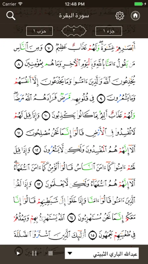 - الاستماع إلى الآية بأحد الأصوات المتاحة
