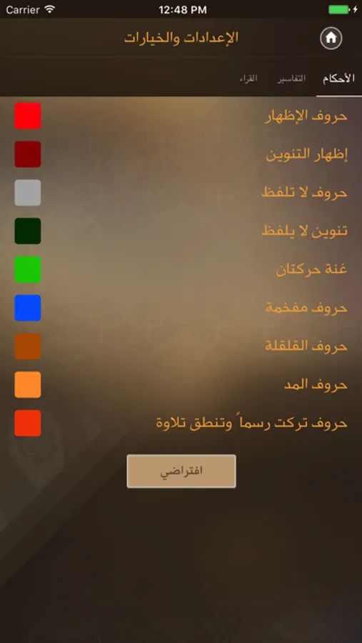 - يمكنك الآن أيها المستخدم الكريم التحكم بنفسك في تحديد لون كل حكم أو تلوين حكم واحد فقط للتركيز عليه لتعلمه، وإجادته، ثم الانتقال للحكم التالي، وهكذا.