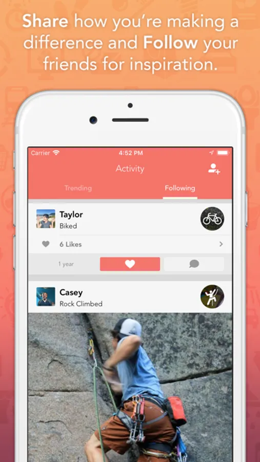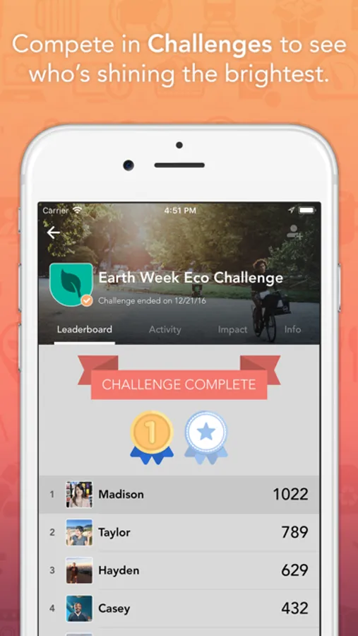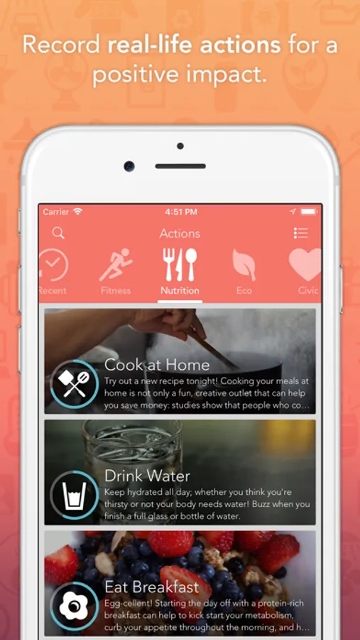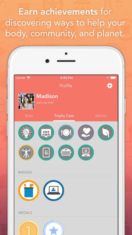 -Earn Points and Pins by recording Actions you do in real-life