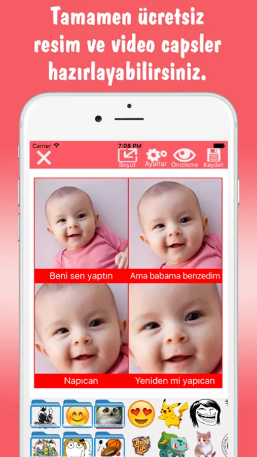 Tamamen ücretsiz olarak sahip olabileceğiniz uygulama ile dilediğiniz resim ve video capsler oluşturabilir, capslerinizi emojiler ile süsleyebilir yada metin ekleyebilirsiniz. Ayrıca oluşturduğunuz capsleri iOS cihazınıza kaydedebileceğiniz gibi dilerseniz uygulamada paylaşabilirsiniz.