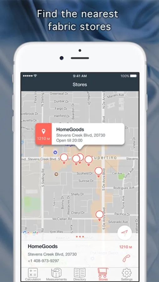 - The app can automatically search for the nearest fabrics and accessories stores;