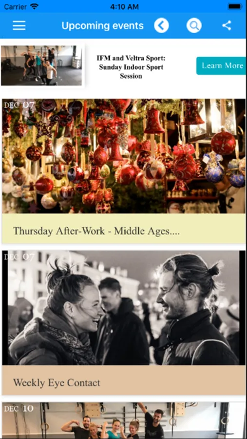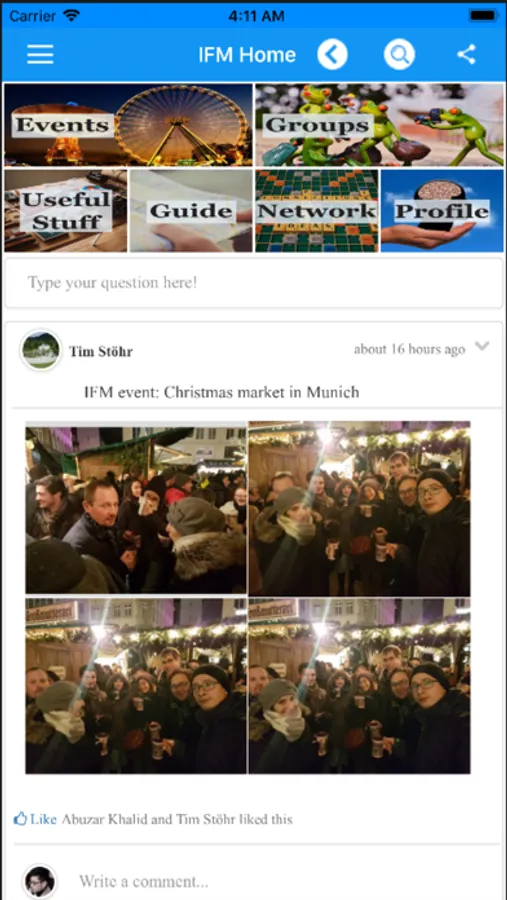 The app will give you the possibility to be notified of upcoming events, to join groups etc... In general, the app allows you to actively participate in the community and make your stay in your chosen International Friends community the most enjoyable possible.