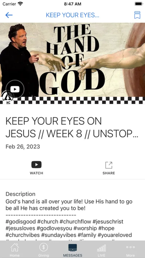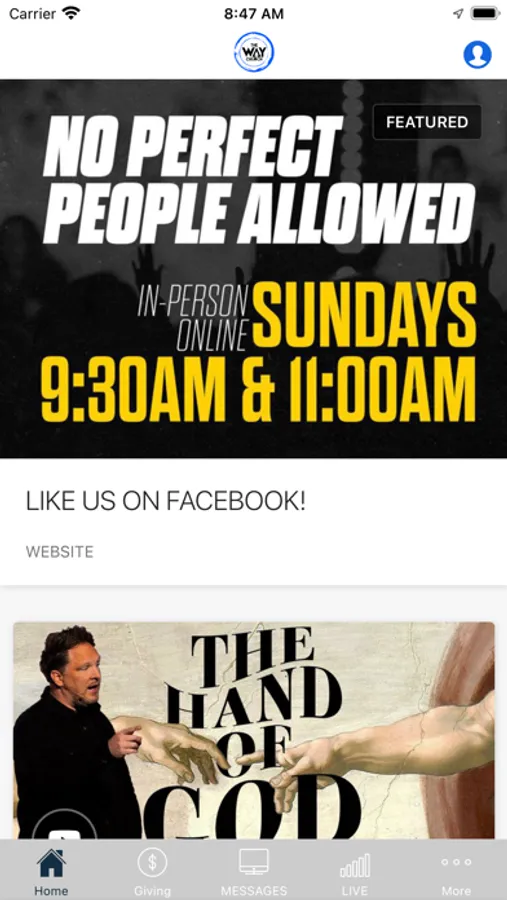 The Way Church App features past messages from Pastor Johnny, upcoming events, social media timelines.