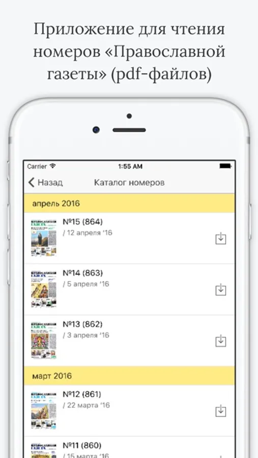 Приложение для чтения номеров Православной газеты (pdf-файлов).