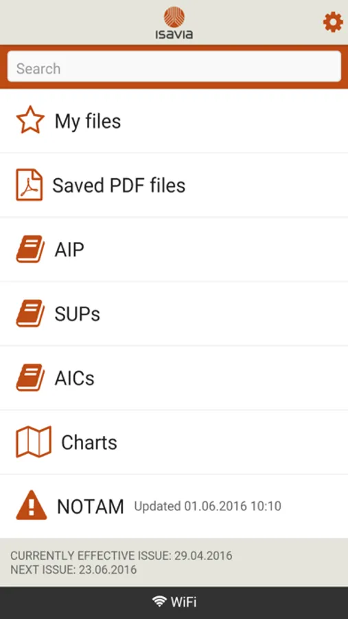 After the app is installed the user can access the HTML version of the AIP whether the mobile device has internet connection or not. The user should see if there is an active internet connection or not and the user can control what data is downloaded and stored on the device. Saved PDF files are available without internet connection.