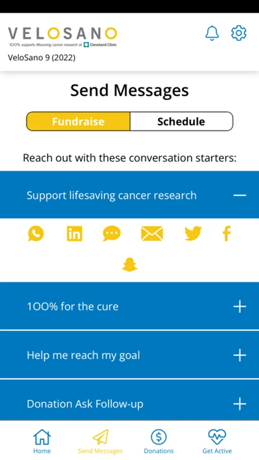 Fundraise on the go for cancer research at Cleveland Clinic with the VeloSano App. Monitor your progress, send emails, social share, and connect to Apple Health/Google Fit/Fitbit/Garmin/Strava to track your physical activity with other VeloSano participants and teams - all from the palm of your hand.