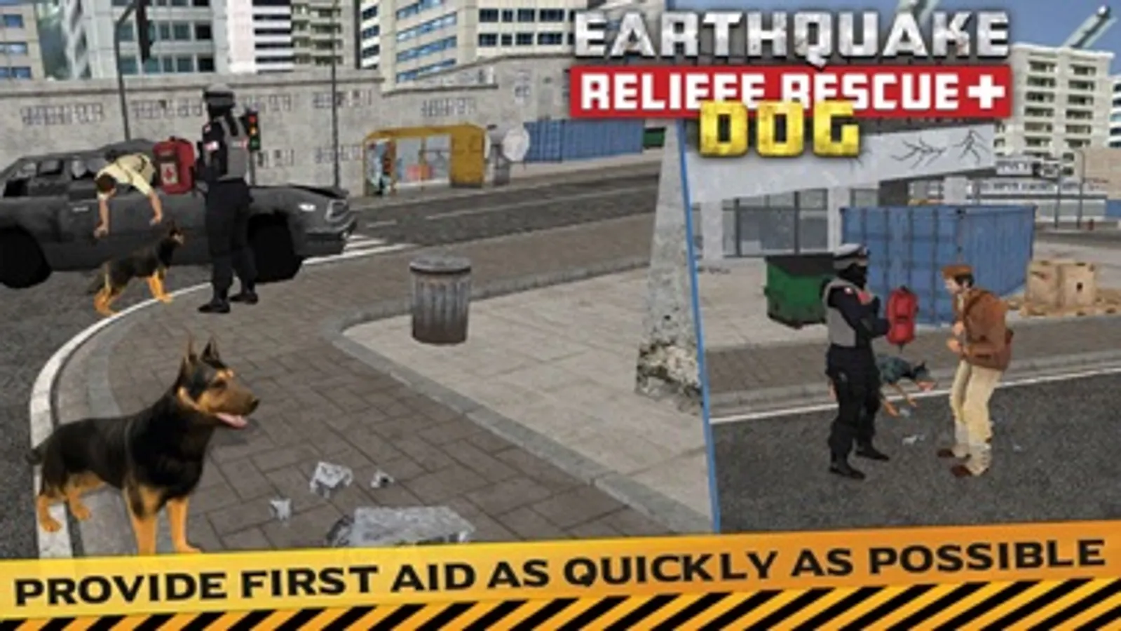 Sever earthquake has shaken your city, building and road are broken, injured people are stuck in many places. Which need your help, Injured people are waiting for rescue. As the premier sniffer dog you can detect the stuck people who are asking for help. Trace them, Find them and get the first aid to them.