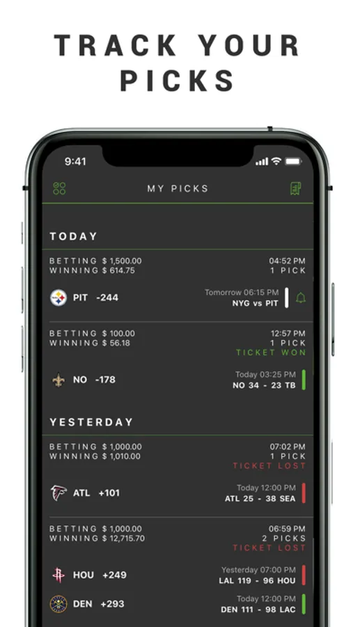 - MATCH PICKS. Use your instinct and experience to select your picks and create a ticket that will tell you how much you can win.
