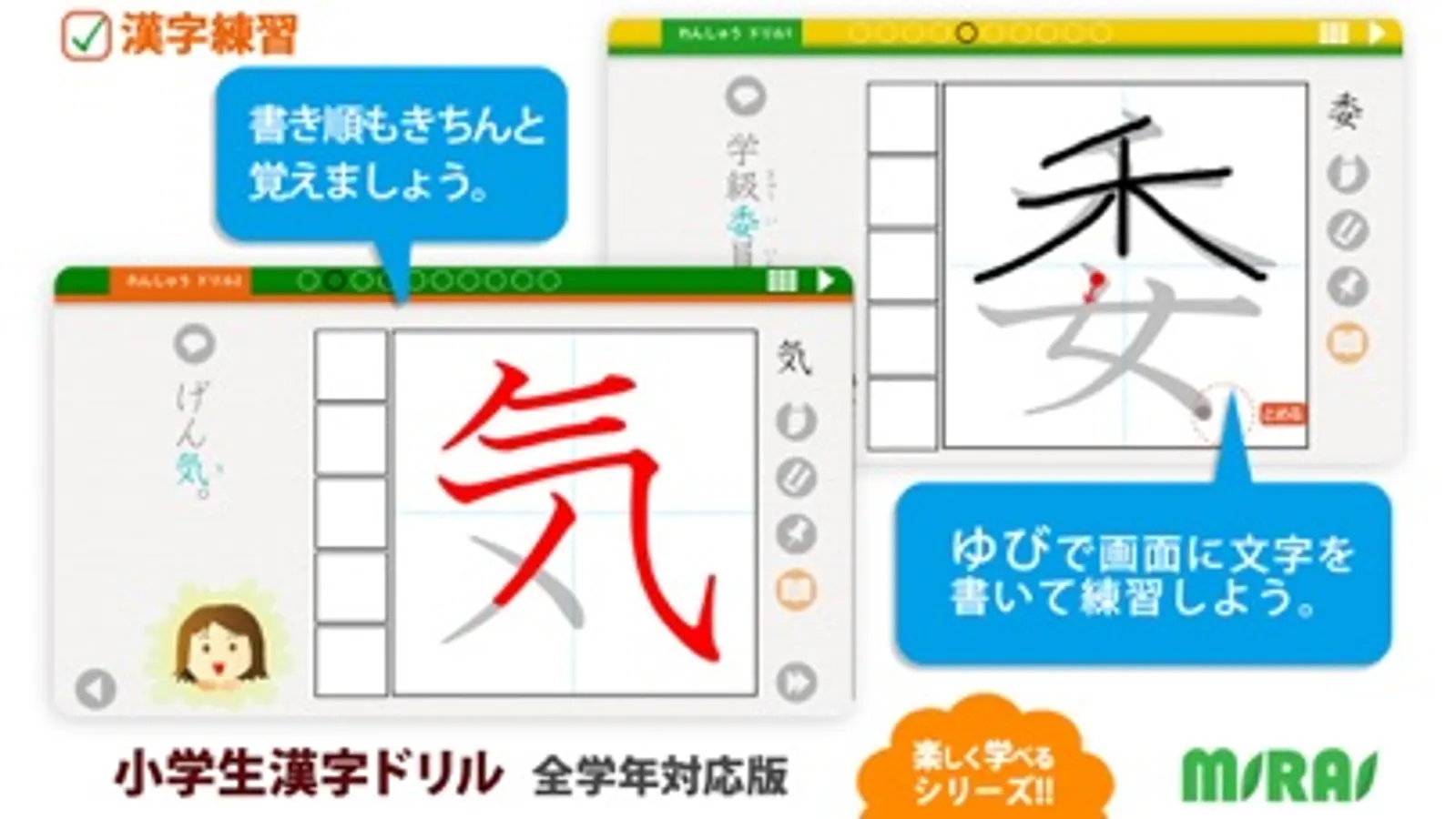 "Kanji Workbook" is an application to learn 1006 kanji learned in the 1st to 6th grade Japanese elementary school. In this application, you can be fun to learn academic skills by watching letters with eyes, listening voice with ears and tracking panel with fingers. Learning correct stroke order is good practice to write beautiful letters. There are many illustrations and examples to help you discover the meaning of characters.