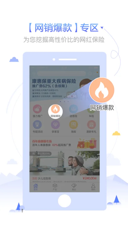 现平台拥有康惠保、健康保、瑞泰瑞和等网销爆款产品,助代理人增员展业!