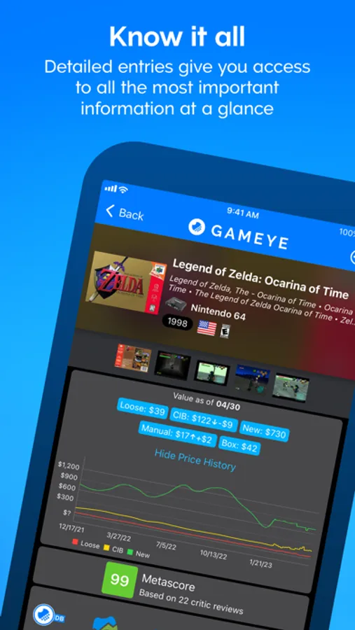 Elevate your game collecting experience with GAMEYE! Seamlessly track games, systems, accessories, guides, and amiibo—all in one place. Uncover the worth of your collection and make savvy deals with confidence.