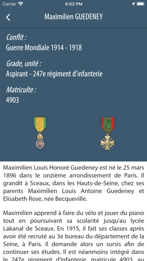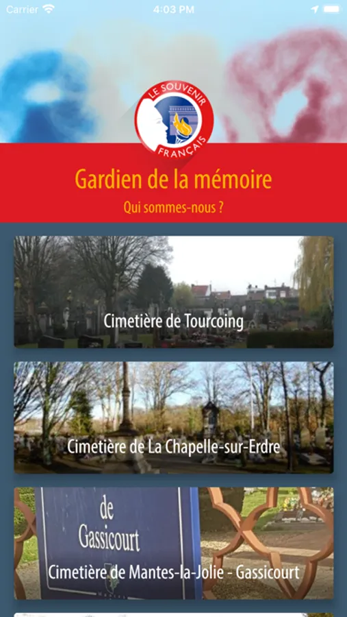 L’application « GéoMémoire » vous accompagne lors de vos visites dans les 43 520 cimetières référencés par Le Souvenir Français. Découvrez à partir des sépultures familiales, qui sont ces soldats « Mort pour la France », leur histoire, leur destin. A partir de contenus enrichis tels que : des photos, des vidéos, des bandes sonores, des récits de texte, Le Souvenir Français conserve la mémoire ce ceux et celles qui sont morts pour la France ou qui l’ont honorée par de belles actions. Il sanctuarise leurs tombes.