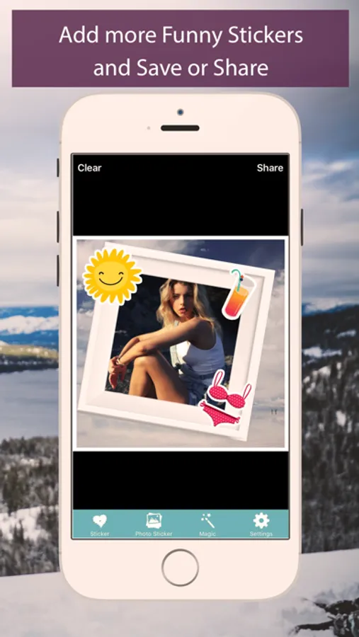 • Select frame sticke (you can custom frame sticker: enlarge, miniature and rotary by two fingers)
