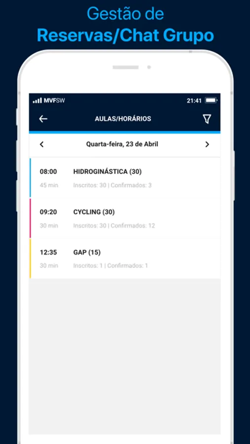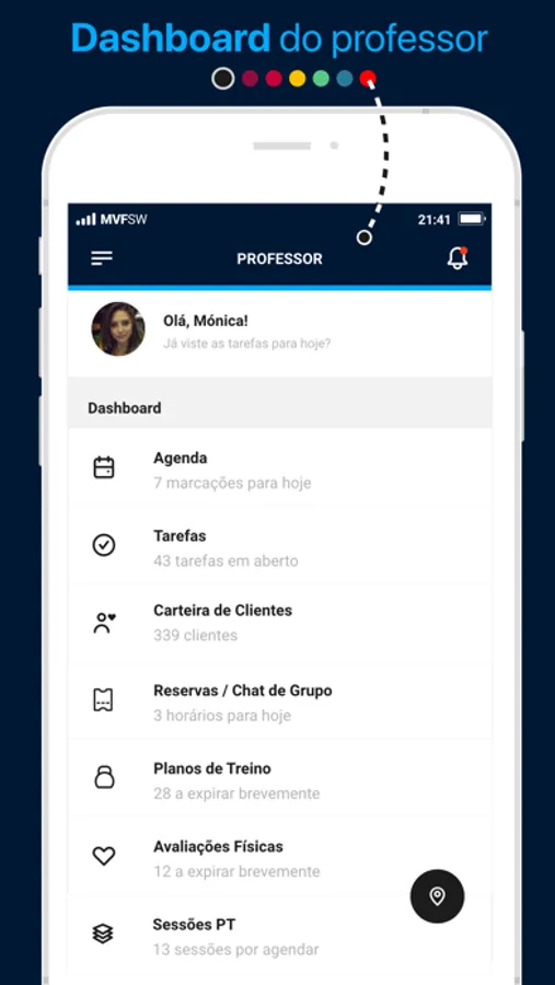 No teu Dashboard podes agendar facilmente e confirmar todas as tuas marcações em agenda, gere as tuas tarefas diárias, acede em tempo real todas as marcações para as tuas aulas de grupo.