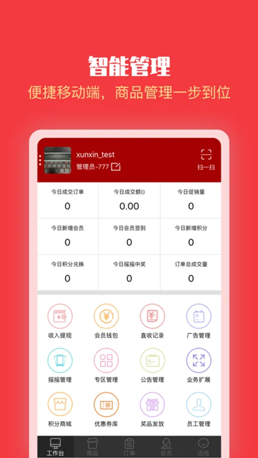 网上购物已经成为主流消费模式,互联网+时代即将给实体商户带来巨大的移动商机,这是一场打破电商垄断的革命,迅信商户版专为实体店商户打造独立的移动商城,为商家提供强大的营销工具:会员管理,广告管理,公告管理,商品管理,促销管理(特价、抢购等),营销管理(摇一摇,每日签到,礼品兑换等),订单管理,员工管理,客服管理等等,并且能够跟消费者随时保持线上线下互动,让消费者满意生意才能做的更好。