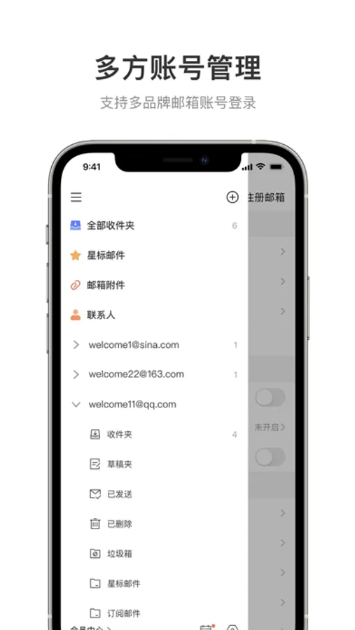 我们支持同时管理多种邮箱账号,给你更清新的界面、更极速的收发邮件体验以及更便捷的邮件管理操作。