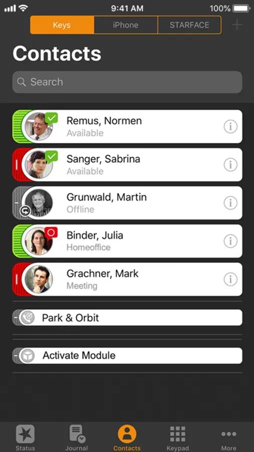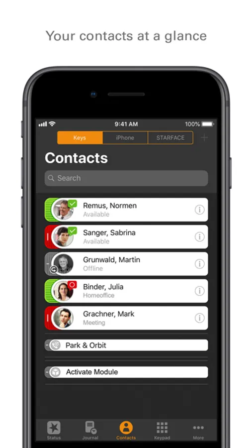 The STARFACE Apps combine powerful high-end business telephony with a seamless integration of instant messaging, voicemail, video chat, and faxing. These features are also available for your iPhone.
