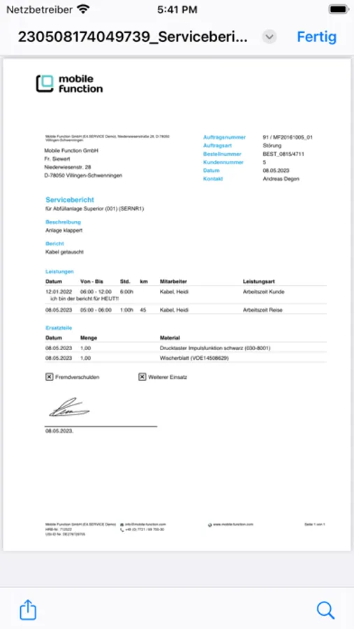 - in Kombination mit unserer Leitstand-Anwendung für den Innendienst ist MF App eine vollwertige Außendienststeuerung