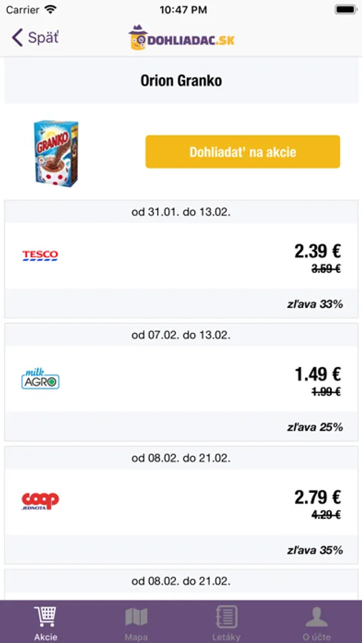 - dohliadanie, vďaka ktorému uvidíte všetky zľavy na Vaše obľúbené produkty na jednom mieste