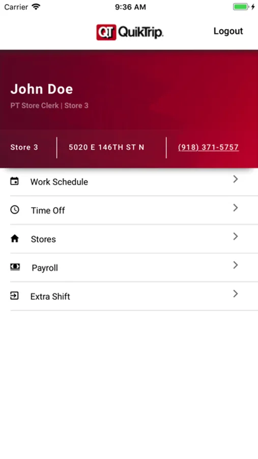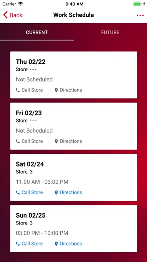 View your schedule and time off balances, store address and phone list, and even get directions to a store.