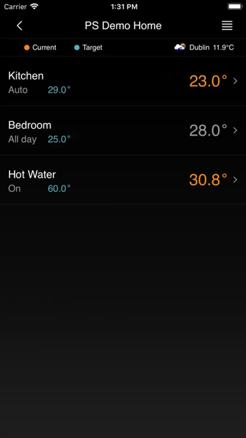 your homes, zones, boost function, mode change, schedule screen, home and account setting menu and much more.