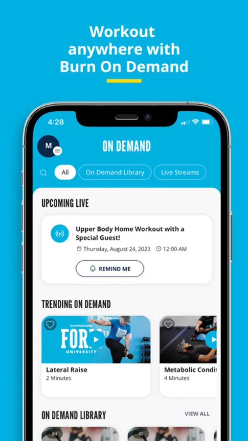 · Access 5, 10 & 15-minute workouts like Burst Training and Super Finishers in Burn On Demand.