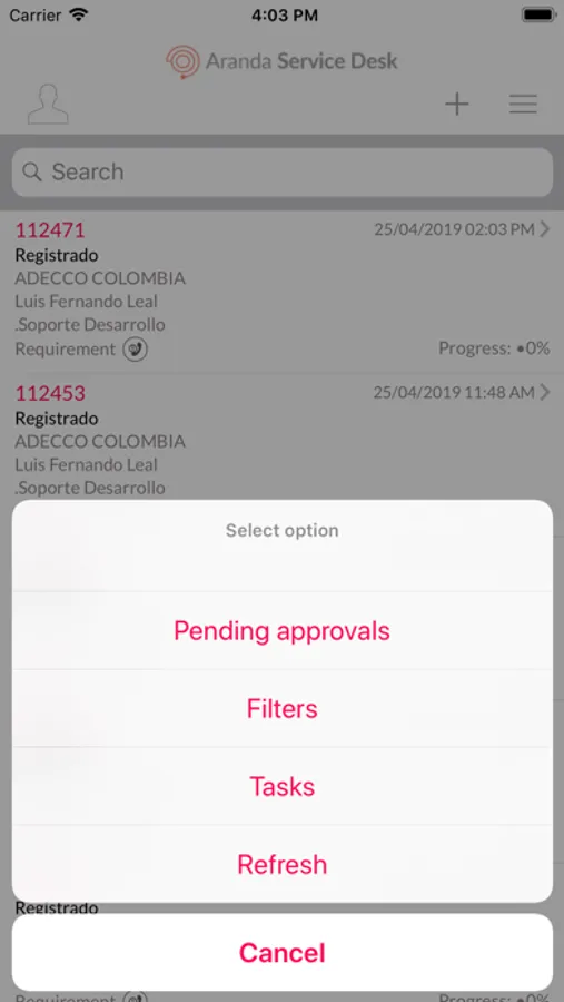 Cree casos y visualice información relacionada con los mismos, permita a sus especialistas hacer seguimiento de su progreso, consultar, crear, editar incidentes, problemas y llamadas de servicio.
