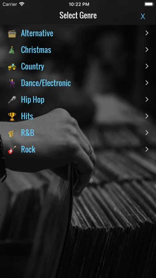 • Genres include: Rock, Country, Hip Hop, Top Hits, R&B, Dance, Electronic, Alt Rock, and even Christmas music.