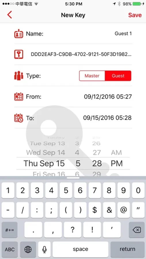 - Admin key x 1, can share two Master keys and 12 sets of Guest key to other smartphones.