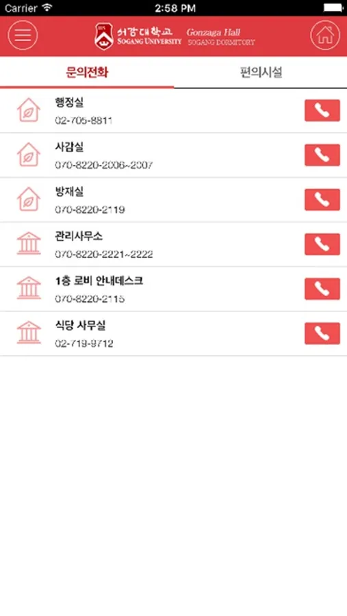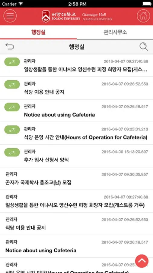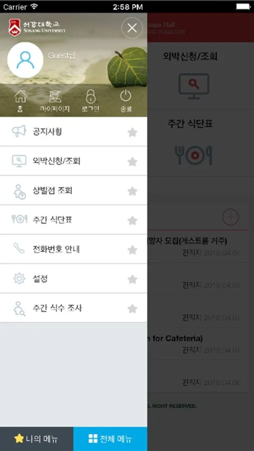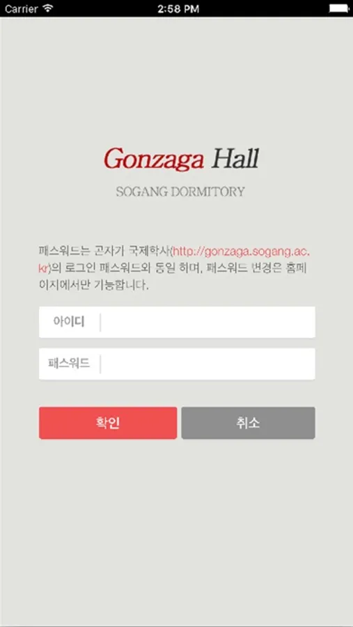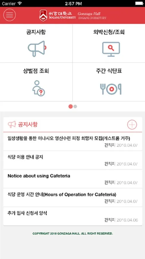서강대학교 곤자가 국제학사 어플리케이션입니다.