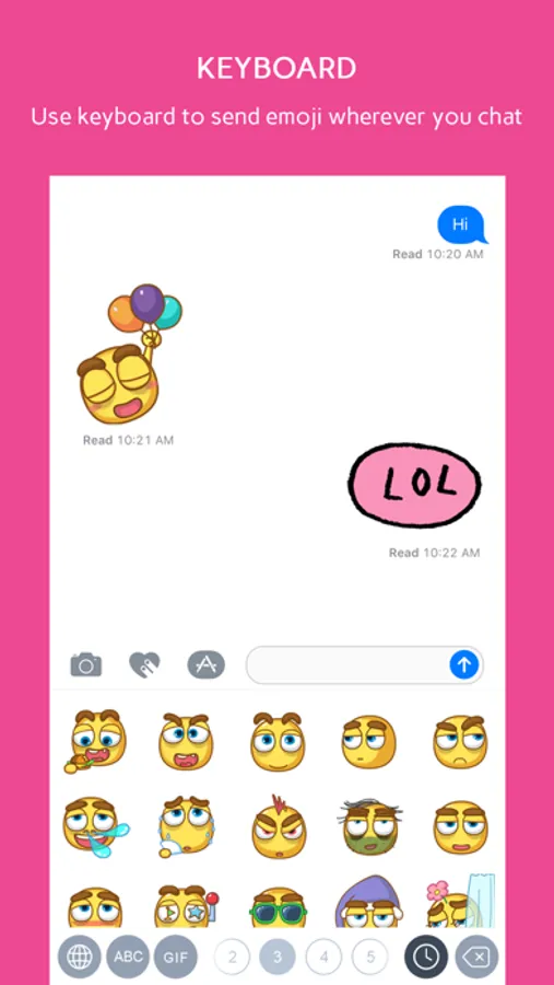 Express yourself with the largest collection of emojis via Message, WhatsApp, Kik, Line, Kakao Talk, WeChat, Email, Notes, Facebook, Twitter and almost anywhere you can type text.