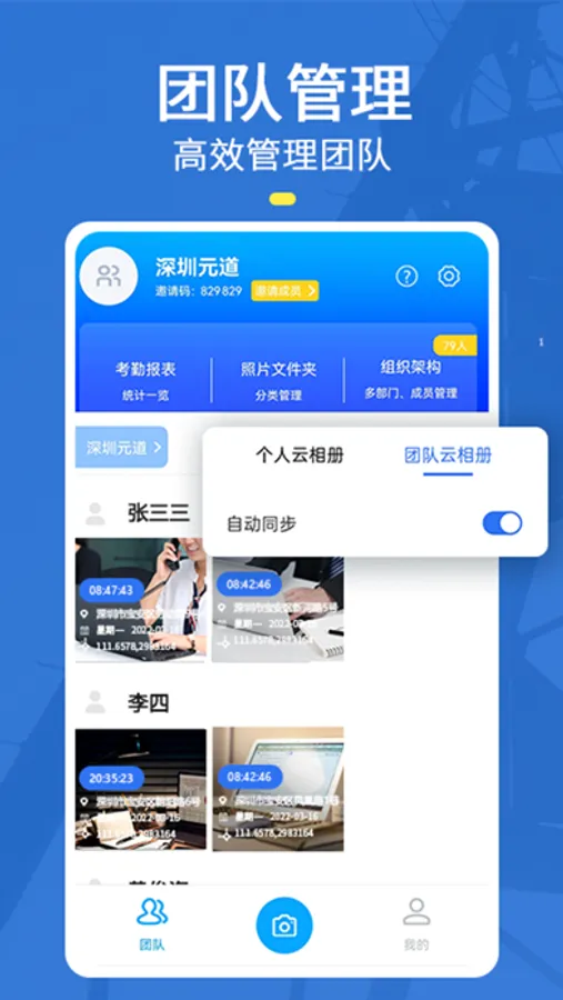 快捷创建/加入一个团队,实现多人照片管理,工作更加高效;