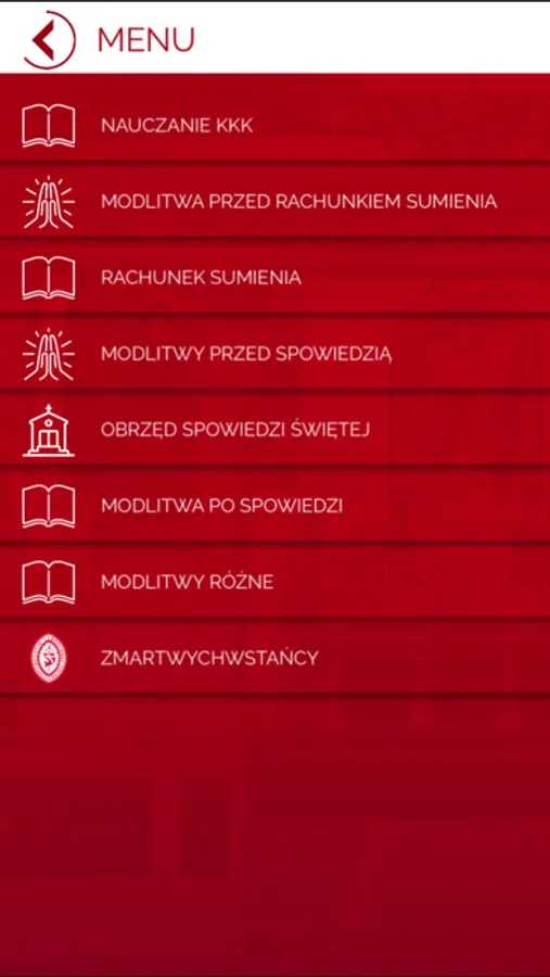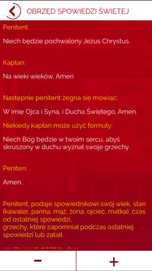 Aplikacja zawiera rachunek sumienia dla dzieci, młodzieży, dorosłych, a także, dla