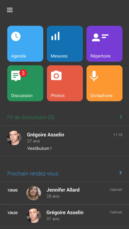Accédez à tout moment et en tout lieu à l’agenda et aux coordonnées de vos patients. Intégrez de manière automatisée et instantanément une photo au dossier médicale. Utilisez le fil de discussion pour répondre aux inquiétudes de vos patients.