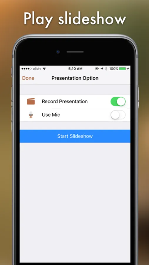 Use recorder to record your voice and add to the slideshow, or add music from Music Library to your slideshow.