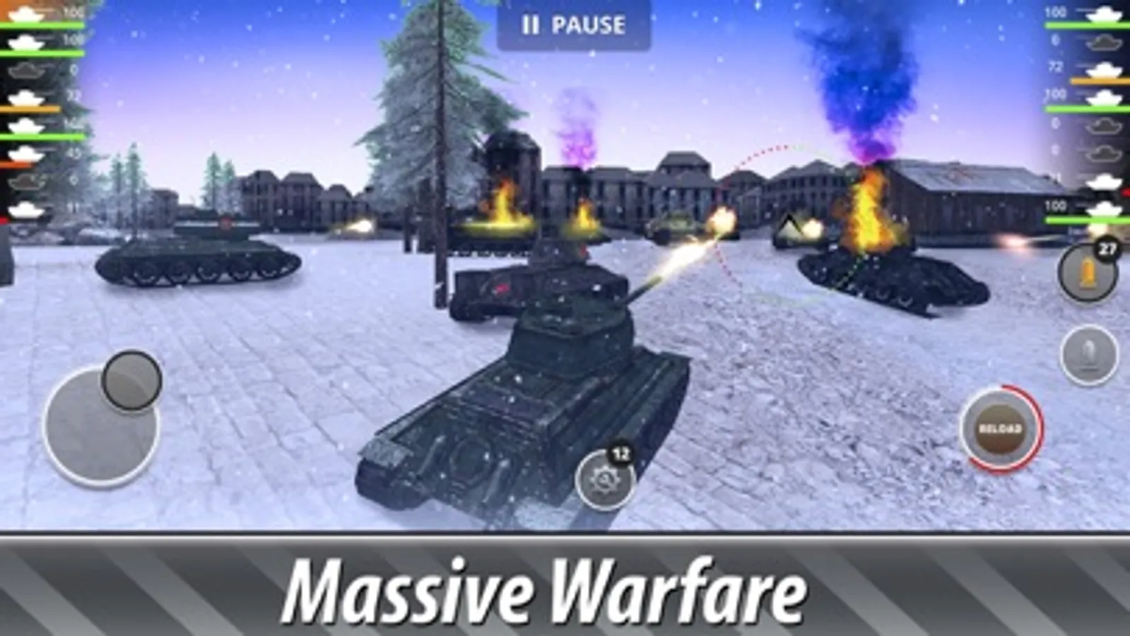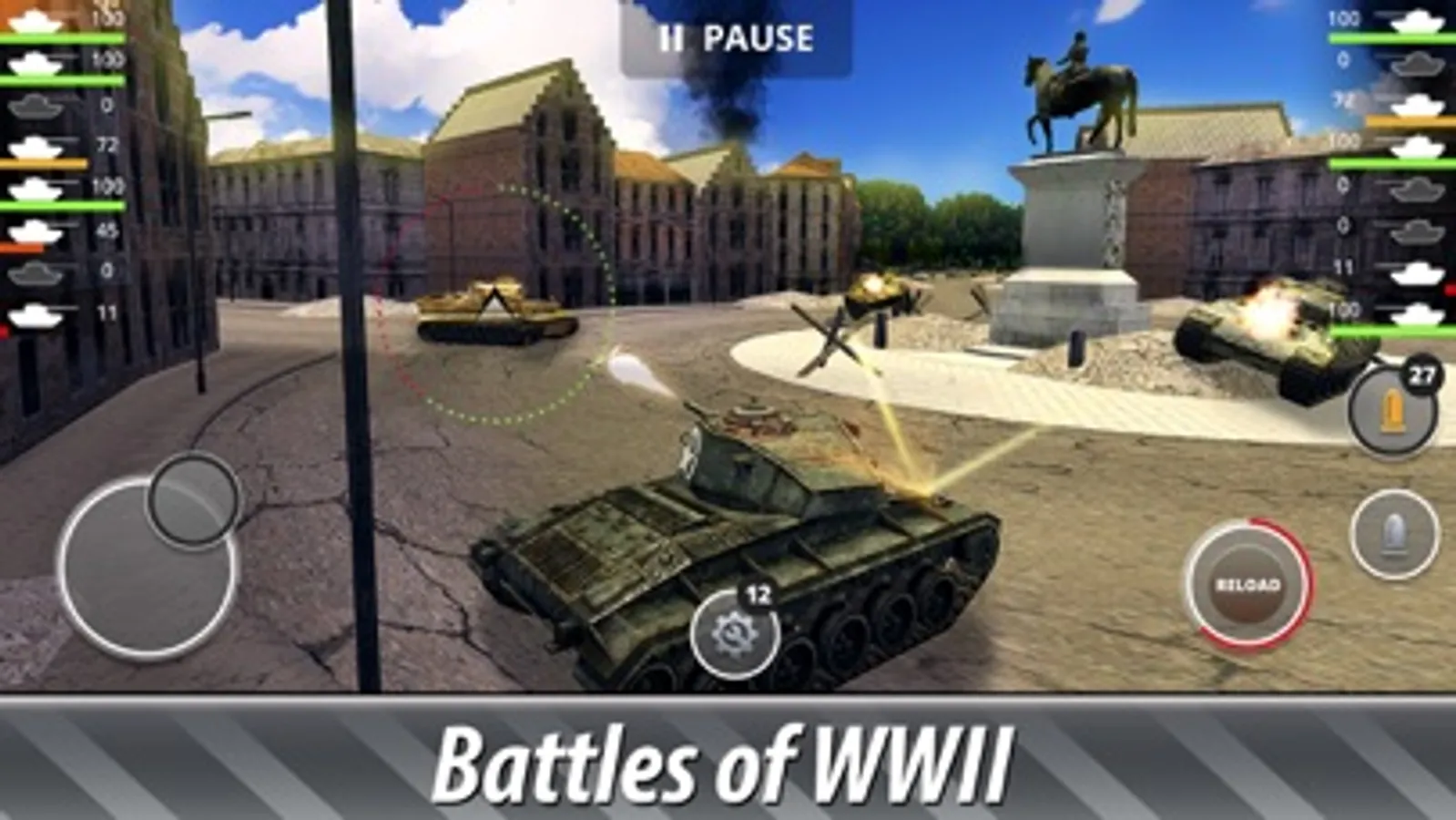 Master tanks driving in tutorial. Join armored army on the battlefield of WWII in story mode. Fight custom battle in battlefield mode. Experience armored warfare of WWII as it is! Chose your side - Germans or allies, each with its own tanks, like panzer, sherman, T-34 and more. Fight war battle with your armored army!