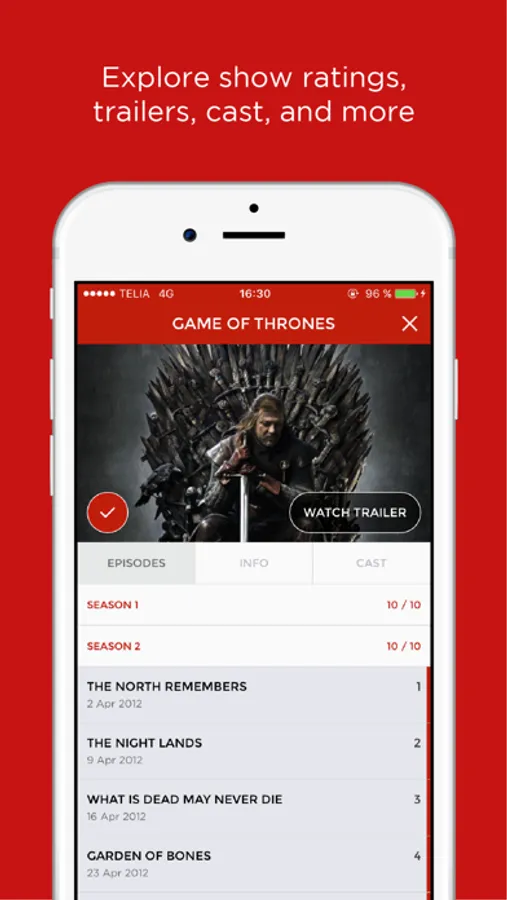 The perfect app for staying up to date with your favorite shows and keeping track of seen episodes while binging.