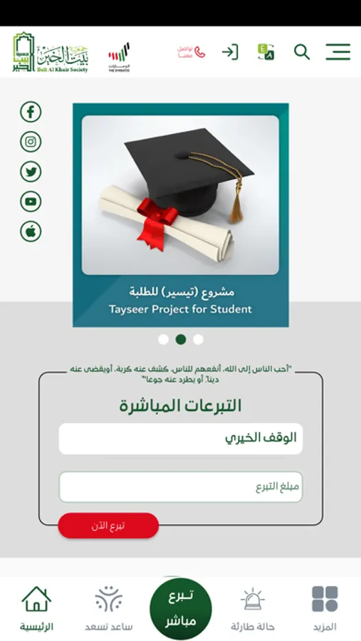تقديم المساعدات المالية والعينية للمحتاجين داخل الدولة ضمن البرامج والمشاريع الخيرية المبتكرة..