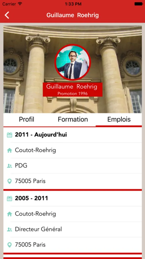Retrouvez tous les étudiants de votre promotion, leur parcours, coordonnées et emplois ! A vous de faire marcher votre réseau pour trouver un job ;)