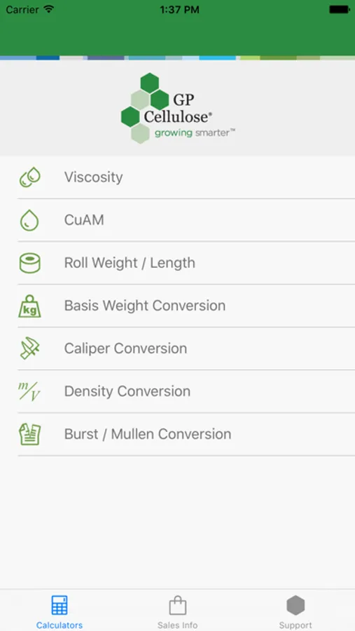 The GP Cellulose Calculator app allows you to quickly convert values for basis weight, caliper, density, and burst / Mullen and also calculate various properties of our product including viscosity, roll weight / length, and air dry percentage. The app also includes a TAPPI roll identification chart for easy accessibility.