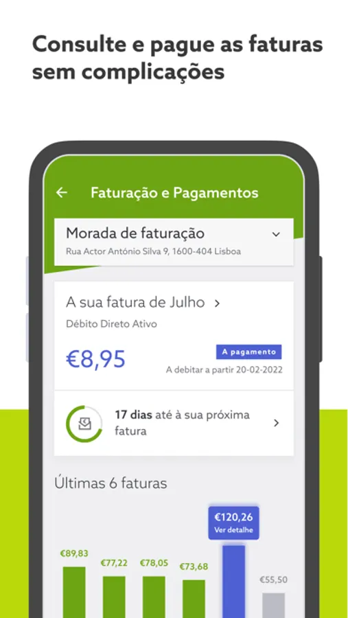 • Consulte faturas, valor em aberto e faça pagamentos;