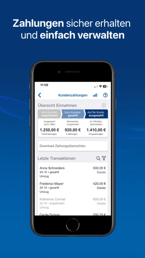 Sie können Ihre Kundenzahlungen einfach und sicher über uns abwickeln. Mit downloadbaren Zahlungsübersichten behalten Sie den Überblick über Ihre Einnahmen.