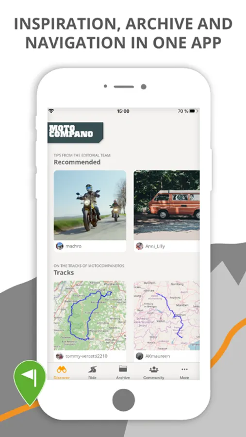 motocompano is the perfect companion for your motorlife. No matter where you want to go, let yourself be inspired or plan your very own tour. The navigation always guides you safely to your destination, even when you are offline. Save, share and rate - for the first time, everything the way your experiences deserve it.