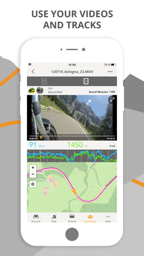 As an automatically generated show with music and text or website you can relive your tours. The routes can be driven virtually via videotracks and on the web you can even start virtual comparison rides with videotracks.